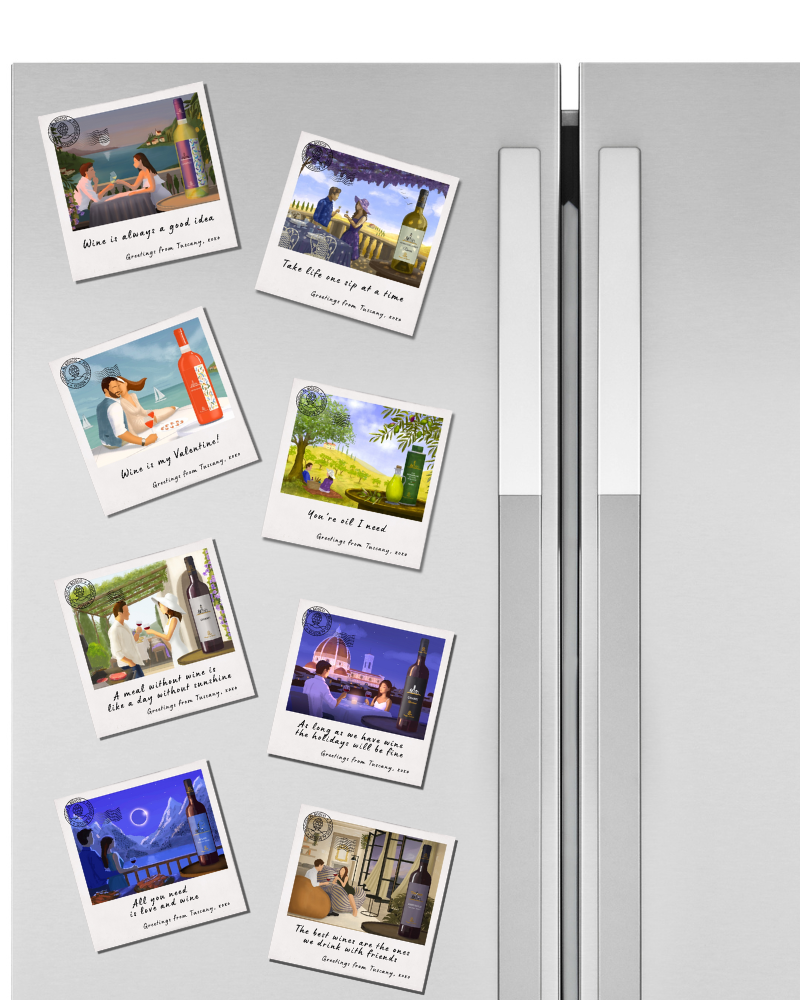 Testo: “Take life one sip at a time. Greetings from Tuscany, xoxo”